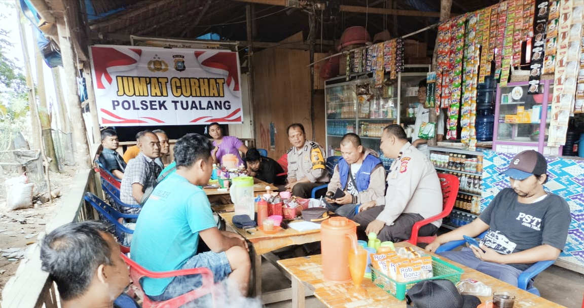 Mewakili Kapolsek Tualang, Panit Binmas, IPDA Sugeng Mishary dalam Program “Jumat Curhat” menjelaskan maksud dan tujuan kegiatan program sebagai menampung curhatan dari masyarakat yang nantinya akan dilakukan pelaksanaan upaya dan solusi.