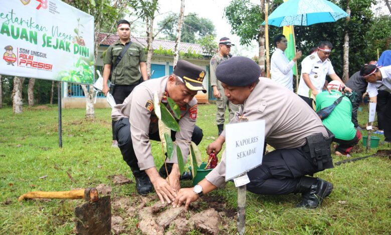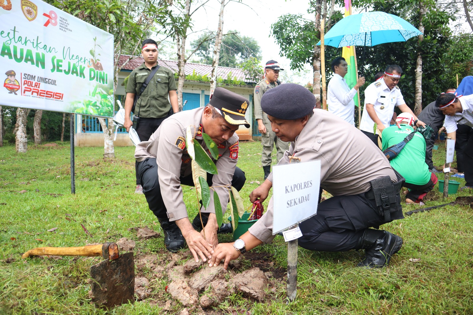 BeritaNasional.ID, SEKADAU KALBAR – Kepolisian Republik Indonesia secara serentak melaksanakan kegiatan penanaman pohon yang bertajuk “Polri Lestarikan Negeri, Penghijauan Sejak Dini”. Program yang digagas Kapolri Jenderal Listyo Sigit ini bertujuan menghijaukan, melestarikan dan memperbaiki iklim Indonesia yang merupakan paru-paru dunia.