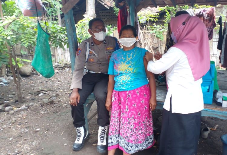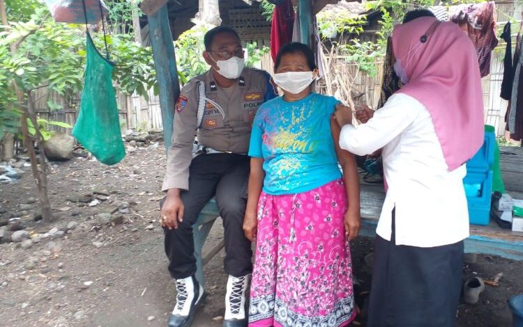 BeritaNasional.id – SITUBONDO JAWA TIMUR -Untuk mempercepat capaian vaksin, Tim Vaksinator Puskesmas Kendit didampingi Ps. Kanit Propam Polsek Kendit Aipda Deddy Mulyadi, melaksanakan vaksinasi secara dor to dor kepada masyarakat Dusun Blangguan, Desa Bugeman Kecamatan Kendit, Kabupaten Situbondo.