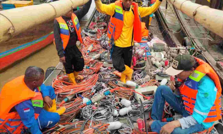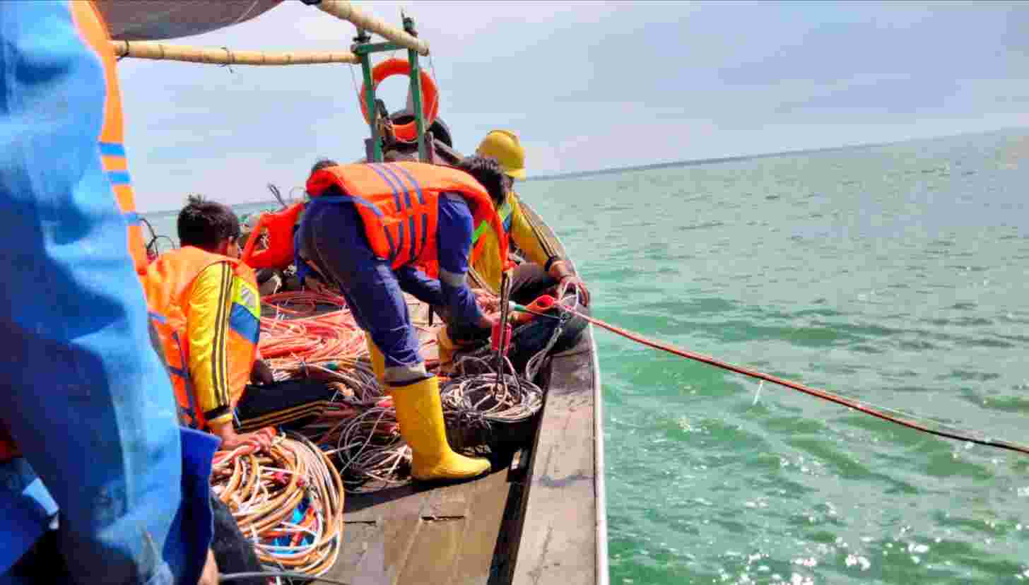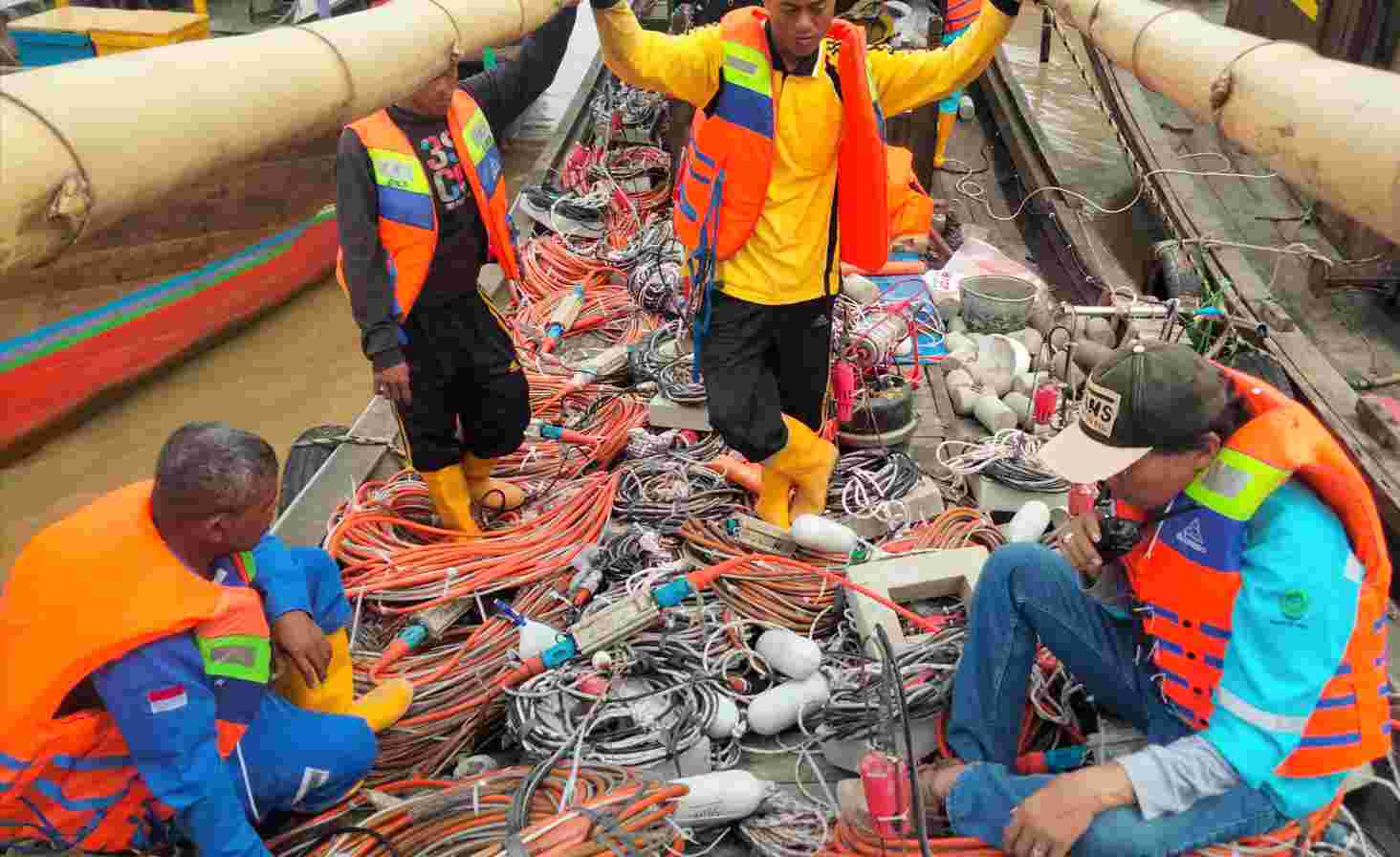 “Kabel seismik ini tidak berbahaya dan bukan kabel listrik. Kabel berwarna oranye, seukuran jari telunjuk orang dewasa, ini merupakan kabel penerima sinyal,” terang Agus.