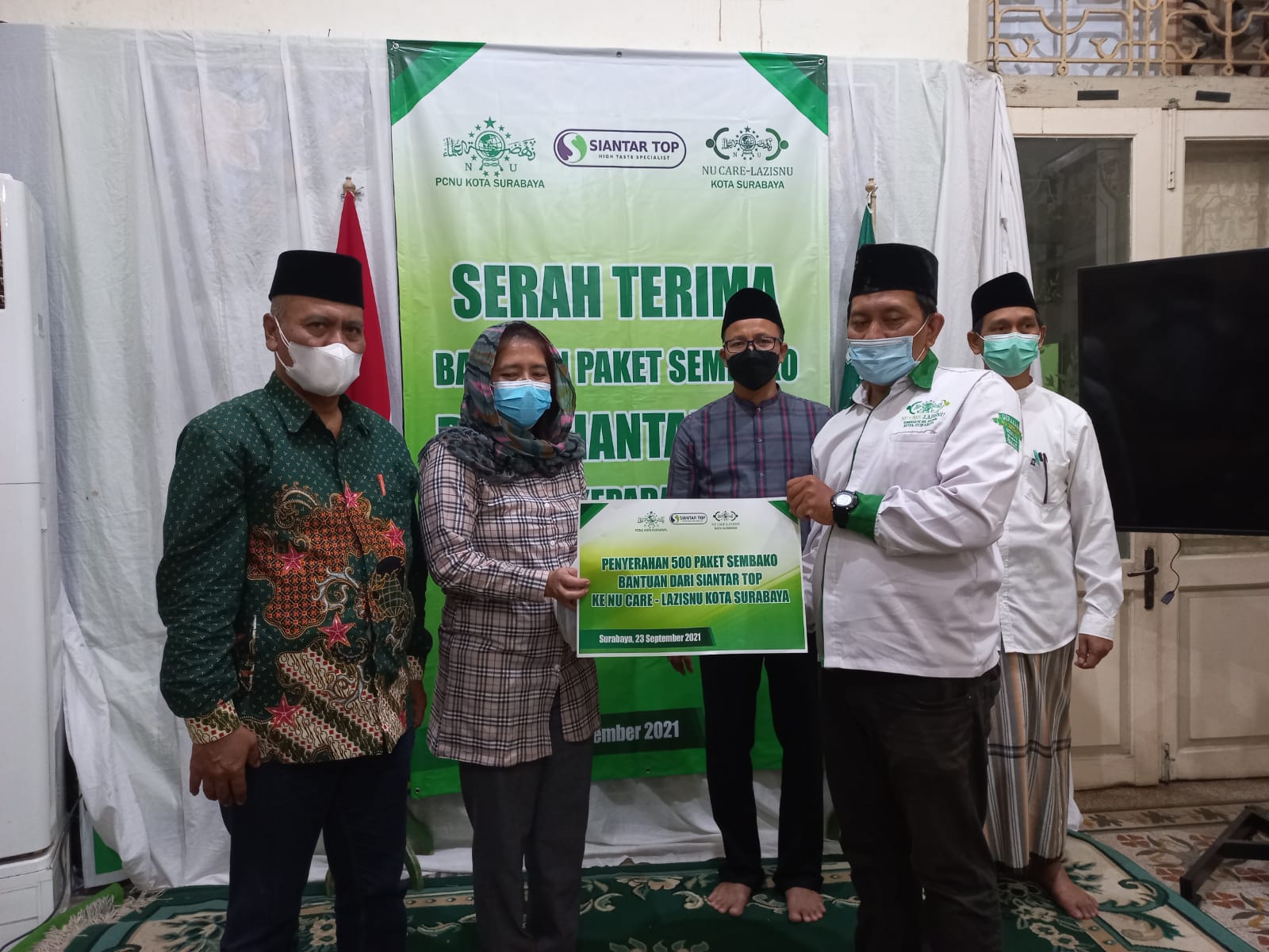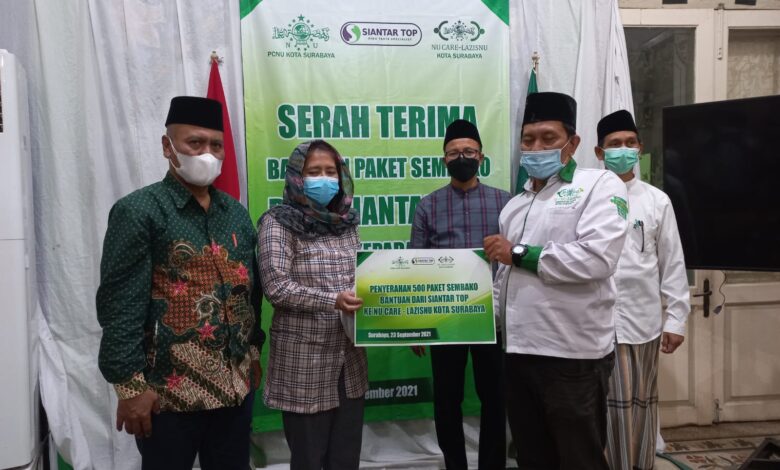 BeritaNasional.ID, SURABAYA — PT Siantar Top menyerahkan bantuan 500 paket sembako kepada Pengurus Cabang Nahdlatul Ulama (PCNU) kota Surabaya melalui NU Care Lazisnu Kota Surabaya, Kamis (23/9/2021).