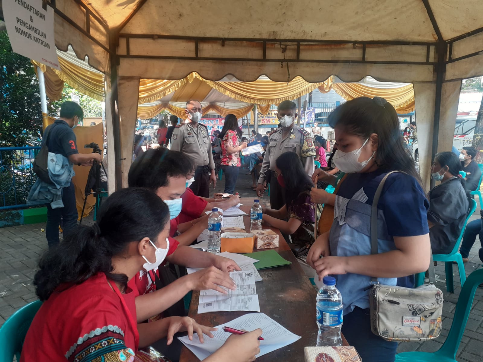 Vaksin dengan dosis 1 dan 2 dengan jenis vaksin Sinovac dan Tenaga medis dari Polres Metro Bekasi Kota dibantu personil dari Polsek Bekasi Timur serta relawan.