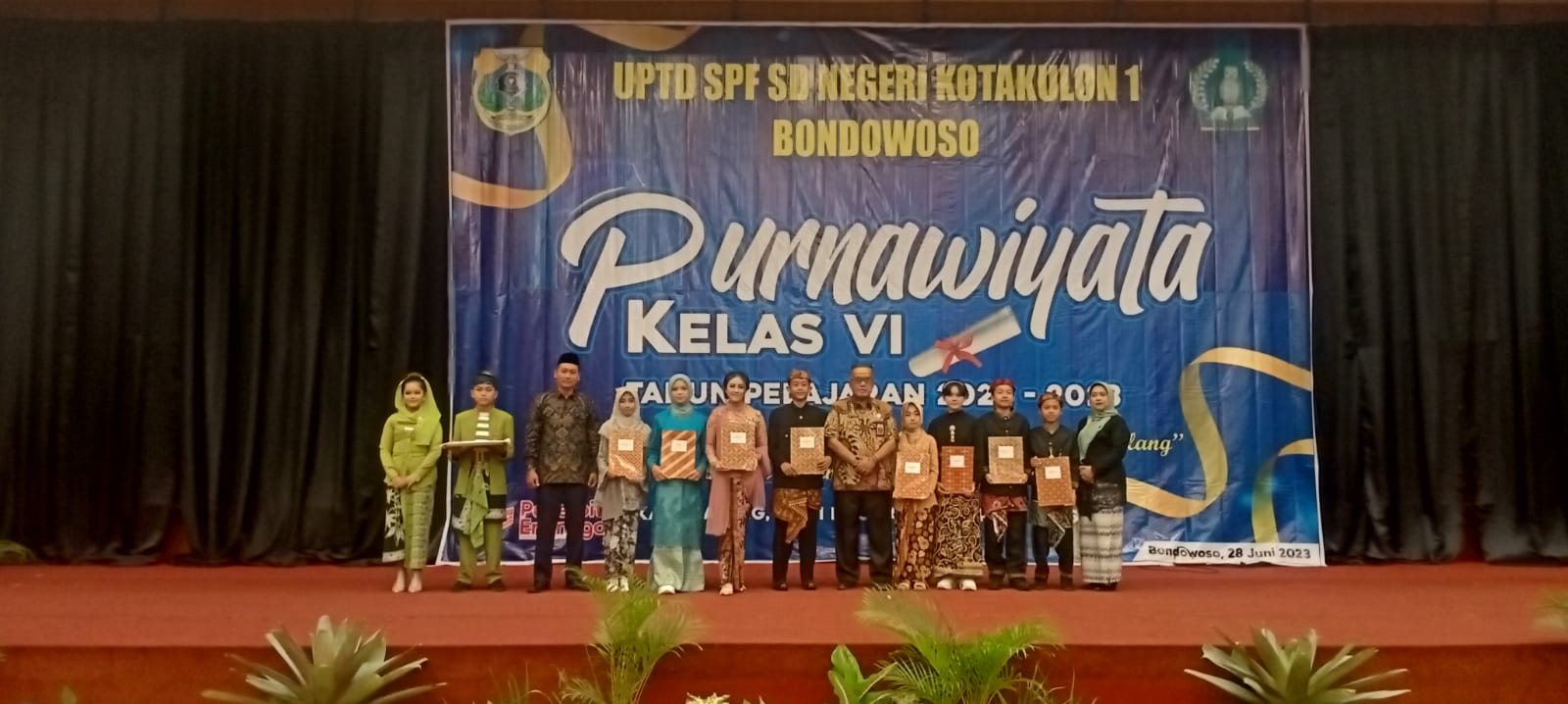 “Kami bersyukur dan apresiasi, ternyata SDN Kotakulon 1 menggunakan toga tapi baju khas budaya dalam acara purnawiyata. Ini patut di apresiasi,” ungkap pak Gik, sapaannya.