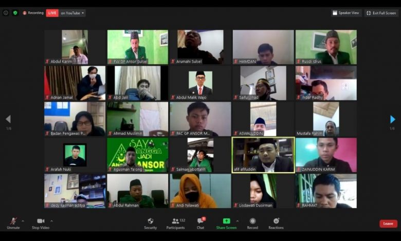 BeritaNasional.ID, Makassar –Pimpinan Wilayah GP Ansor Sulawesi Selatan bekerjasama dengan Badan Pengawas Pemilihan Umum (Bawaslu) Provinsi menggelar diskusi berbasis virtual aplikasi Zoom, Selasa 16 Juni 2020.