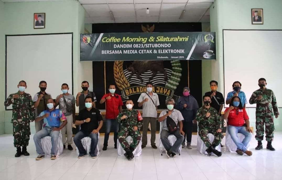 Sekedar informasi, kegiatan Coffe Morning dan Silaturahmi dengan media cetak, media elektronik dan media online ini dihadiri Pasi Inteldim 0823/Situbondo Lettu Kav Suyitno, Pa Sandidim 0823/Situbondo Letda Inf Suyitno dan anggota Kodim 0823/Situbondo yang lainnya.