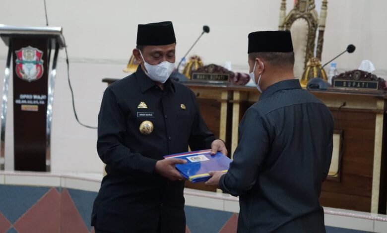 “Perencanaan yang cermat, dan dalam waktu yang singkat, DPRD Kab. Wajo bersama Perangkat Daerah terkait mampu menyiapkan Ranperda hingga akhirnya disetujui hari ini” ucap Bupati Wajo.