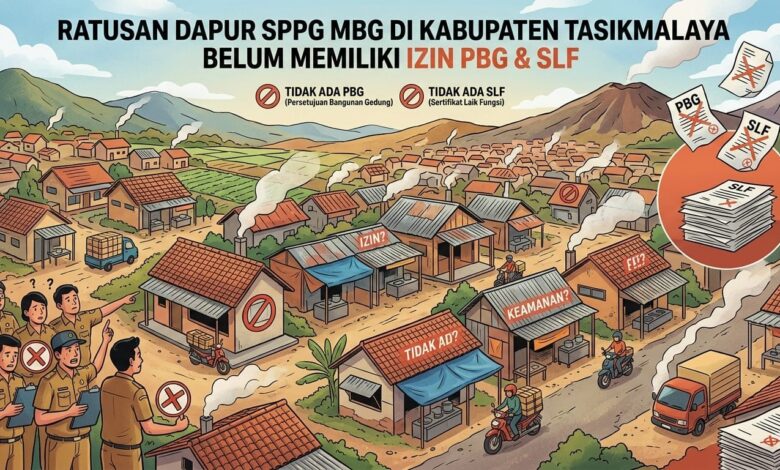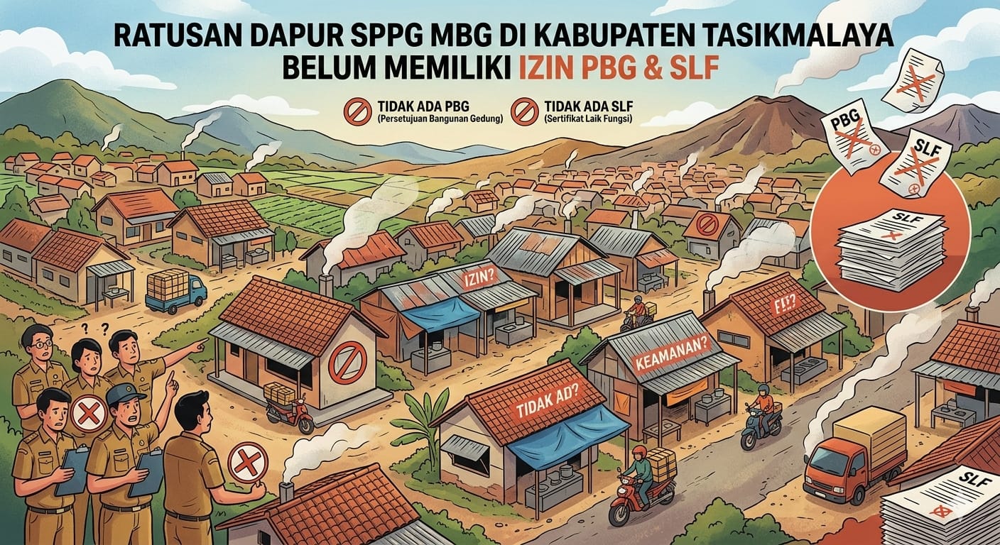 Beritanasional.id – Tasikmalaya, Jawa Barat,- Ratusan dapur Satuan Pelayanan Pemenuhan Gizi (SPPG) program Makan Bergizi Gratis (MBG) di Kabupaten Tasikmalaya tengah menjadi sorotan publik. Polemik muncul setelah terungkap bahwa banyak dapur belum mengantongi izin Persetujuan Bangunan Gedung (PBG) dan Sertifikat Laik Fungsi (SLF), meski sebagian besar sudah beroperasi dengan Sertifikat Laik Higiene Sanitasi (SLHS) yang diterbitkan Dinas Kesehatan. Kondisi ini menimbulkan pertanyaan serius mengenai kepatuhan regulasi dan standar pelayanan publik.