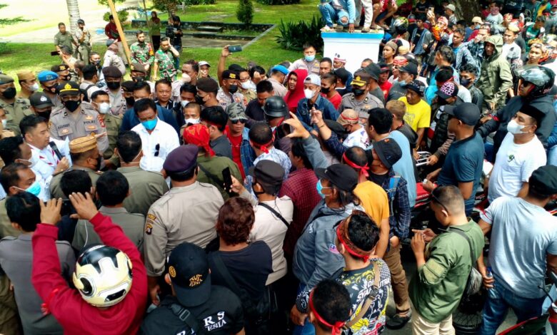 ” Kami berharap Forkopimda terkait menindaklanjuti apa yang sudah kami sampaikan dalam tuntutan kami dan jika dalam waktu 3 x 24 jam tidak diindahkan maka kami akan datang kembali dengan massa yang lebih besar, pungkasnya”. (Noldi/Bernas)