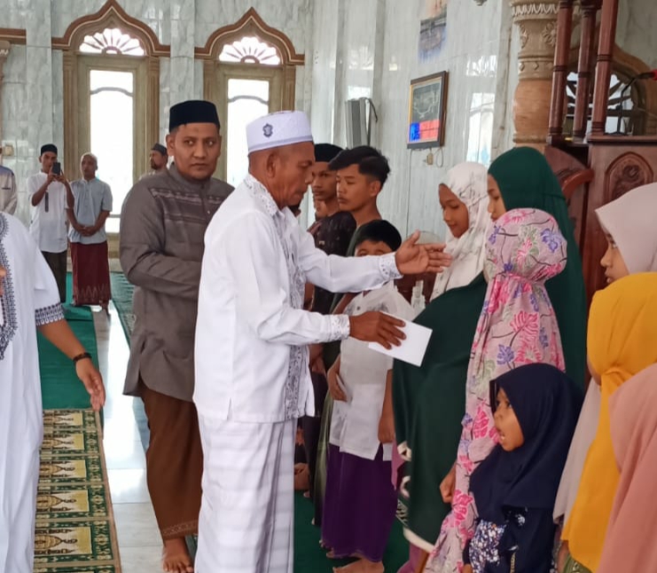 BeritaNasional.ID, ACEH TIMUR — Rayakan hari raya Idul Fitri 1443 Hijriah, pemuda Gampong Alue Ie Mirah, Kecamatan Indra Makmu, Kabupaten Aceh Timur menyantuni anak yatim dan yatu se Kampung yang di pusatkan di Mesjid Baitul Hidayah Alue Ie Mirah.