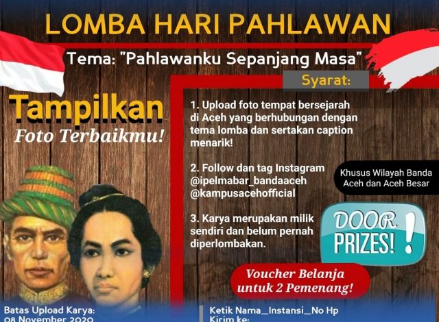 Adapun persyaratan Lomba Hari Pahlawan ini adalah harus mengupload foto di tempat sejarah serta berhubungan dengan tema yang diusung dan juga jangan lupa sertakan caption menarik. Kemudian, IPELMABAR mewajibkan untuk mengikuti akun Instagram @ipelmabar_bandaaceh dan juga mengikuti akun Instagram @kampusacehofficial selaku sponsor kegiatan. Karya yang diperlombakan merupakan milik pribadi dan belum pernah diperlombakan sebelumnya. Info lebih lanjut peserta bisa menghubungi nomor ponsel yang tertera yaitu 082360554576 (Bella Attaqy) dan 085270515626 (Angga Zulvian).