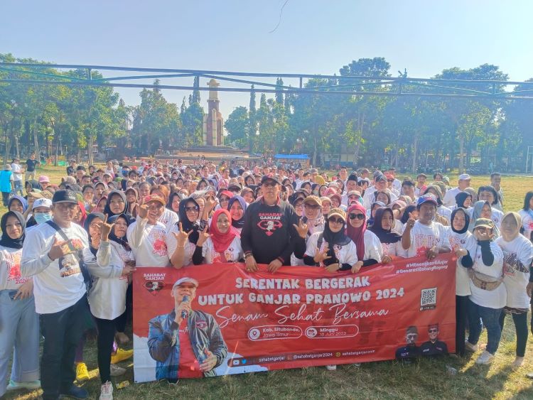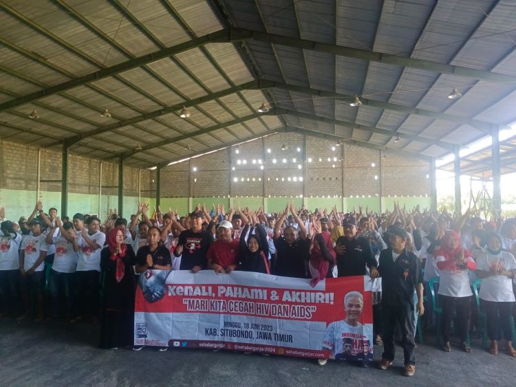 BeritaNasional.ID – SITUBONDO JATIM,-Relawan Sahabat Ganjar (Saga) Kabupaten Situbondo menggelar Senam Sehat Bersama yang berlangsung di alun-alun Kecamatan Besuki dan melaksanakan sosialisasi pencegahan HIV AIDS di Desa Klatakan, Kecamatan Kendit, Kabupaten Situbondo, Minggu (18/6/2023).