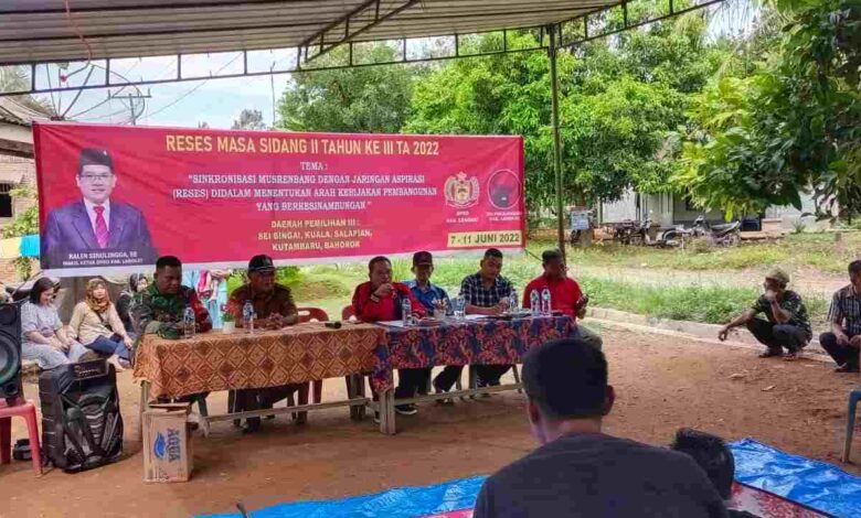 BeritaNasional.ID, Langkat – Warga Desa Ujung Bandar Kecamatan Bahorok, Kabupaten Langkat, Sumut, meminta pembangunan sarana dan prasarana bagi desanya. Hal demikian dikatakan masyarakat, ketika berlangsungnya kegiatan Reses yang digelar Wakil Ketua DPRD Langkat, Ralin Sinulingga, Selasa (7/6/2022).