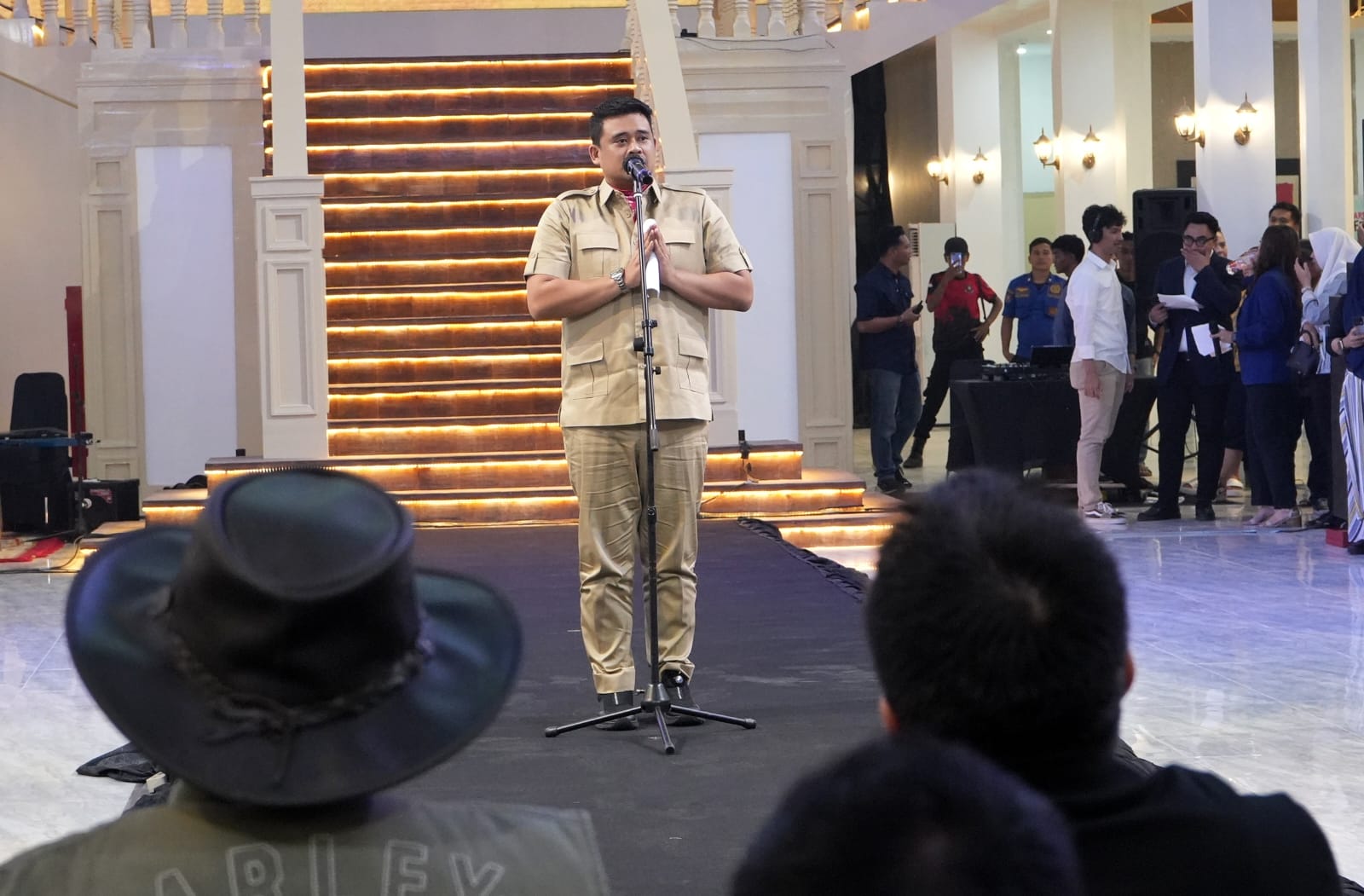 “tidak semua bisa masuk kemari, jadi harus terdaftar dan terpilih, ada kurasinya. Artinya bukan dipilih yang paling bagus atau sudah besar tetapi dipilih bagaimana dia mau menjadi bagus dan mau menjadi besar. Jadi kalau bisa komposisinya diseimbangkan. Tolong kedepannya dihitung betul agar bangunan ini fungsinya baik itu untuk seni budaya dan umkm bisa berjalan dengan baik,” jelas Bobby Nasution.