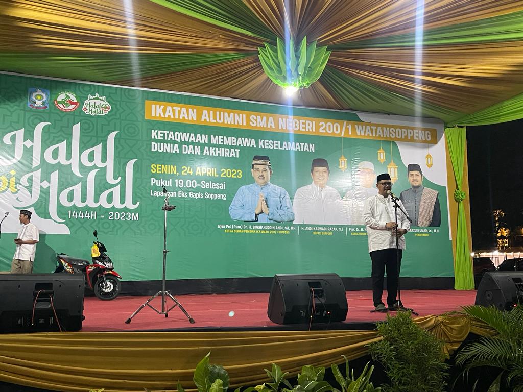 SOPPENG– Bupati Soppeng HA Kaswadi Razak, SE menghadiri kegiatan tahunan Halal bi Halal Ikatan Alumni SMA Negeri 200/1 Watansoppeng yang dilangsungkan di Lapangan Eks Gapis Soppeng, Senin malam, 24 April 2023
