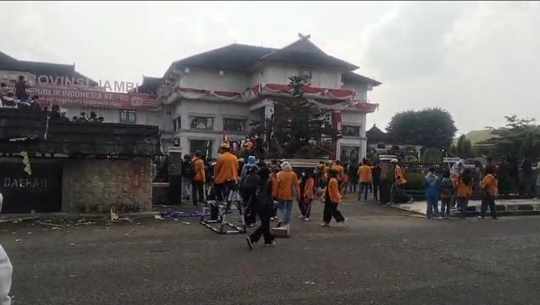 BeritaNasional.ID, JAMBI – Suasana Kota Jambi memanas pada Jumat siang (29/8/2025) ketika ribuan mahasiswa dari berbagai universitas bersama elemen masyarakat turun ke jalan melakukan aksi unjuk rasa besar-besaran. Gelombang massa yang mengepung Gedung DPRD Provinsi Jambi awalnya berjalan damai, namun pecah ricuh setelah mereka tidak mendapati seorang pun anggota dewan di dalam gedung.