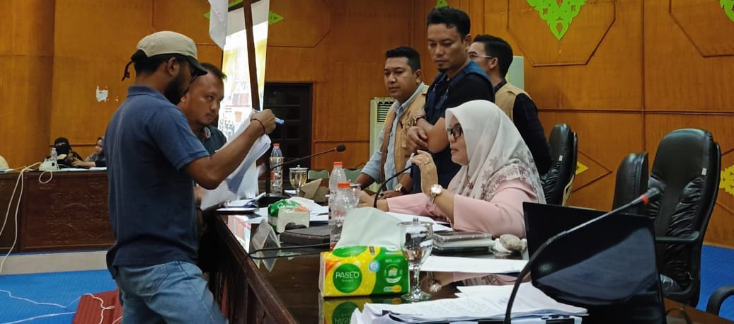 Abdi dalam protesnya membacakan contoh selisih D Hasil Kecamatan dengan D Hasil Kabupaten.