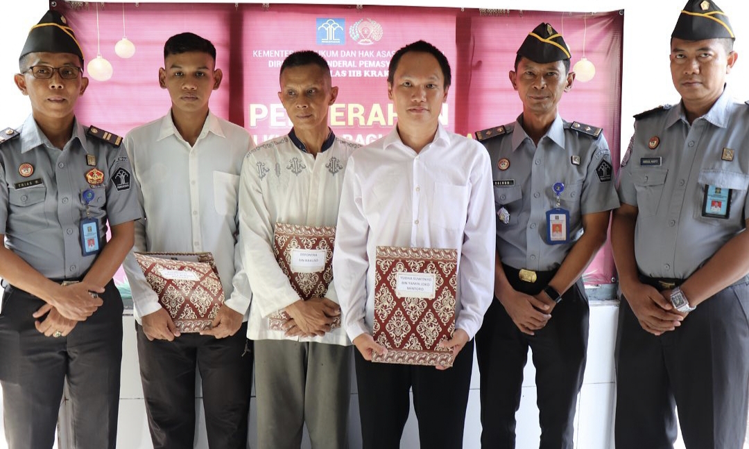 Rumah Tahanan Negara Kelas IIB Kraksaan Kanwil Kemenkumham Jawa Timur menyerahkan Remisi Khusus Hari Raya Natal tahun 2023 secara simbolis kepada 3 Warga Binaan Pemasyarakatan.