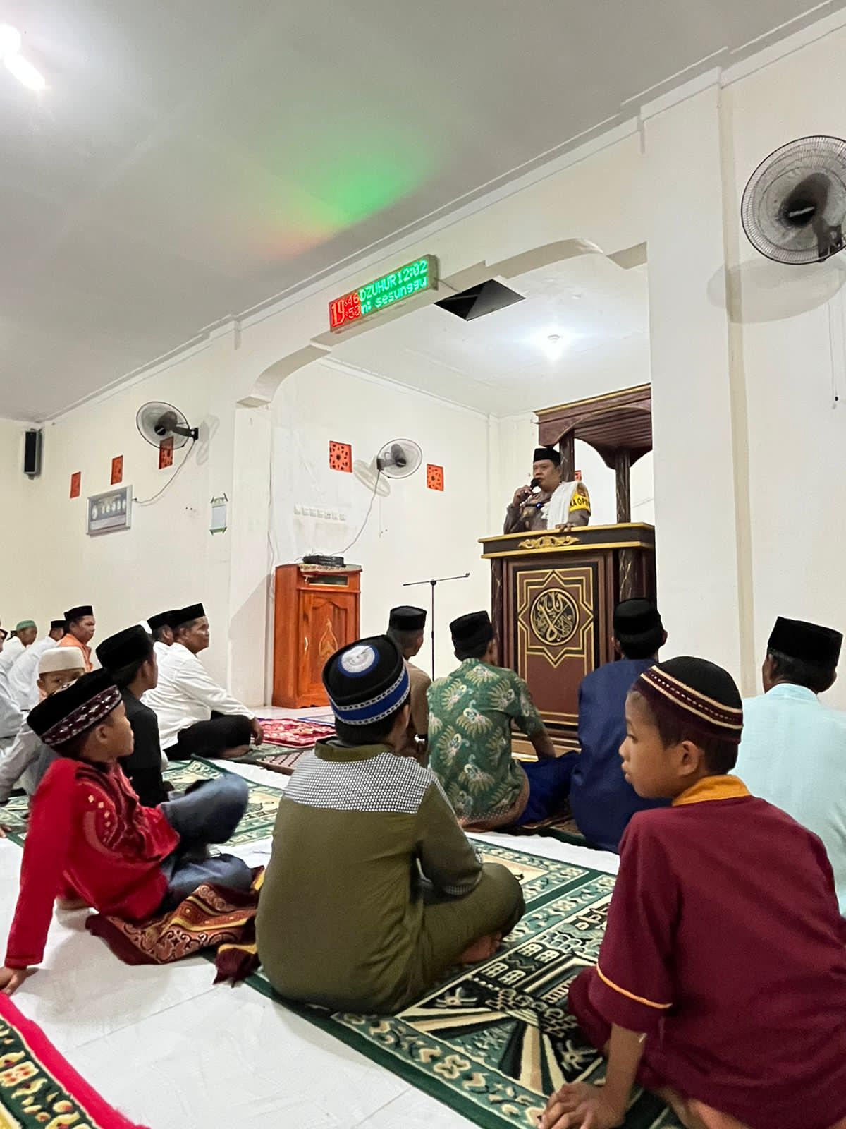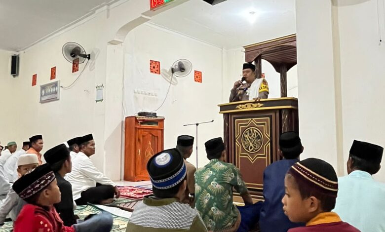 Setelah shalat berjamaah Isya, Kapolres Polman membawakan ceramah dan mengajak masyarakat mendekatkan diri kepada Allah SWT. Memulai dengan melafalkan shalawat, berdzikir, bertasbih dan beristighfar.