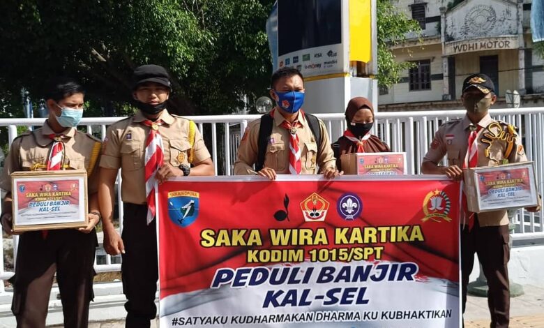 Musibah bencana alam yang terjadi di Kalsel beberapa waktu lalu, menggugah banyak pihak untuk melakukan penggalangan dana guna membantu meringankan beban para korban bencana. Seperti halnya Saka Wira Kartika, Binaan Kodim 1015/Sampit Kabupaten Kotim melakukan penggalangan dana guna membantu warga yang kena musibah, Sabtu 23/01/2021