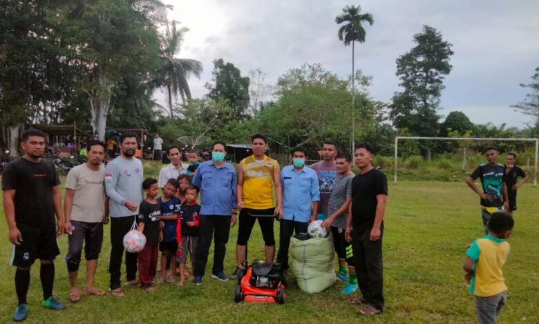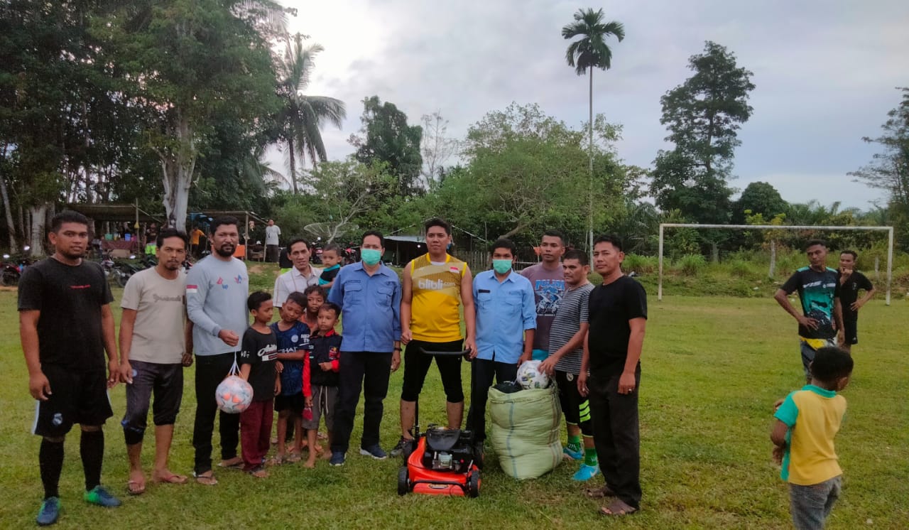 Menurutnya, bantuan sarana olahraga dan mesin potong rumput ini sangat bermanfaat bagi lapangan bola bersama Indra Makmu.