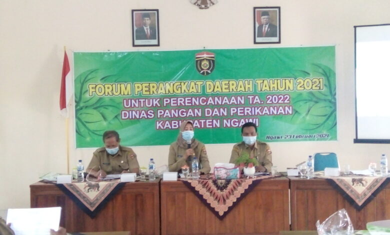 BeritaNasional.ID, Ngawi – Dalam menyusun perencanaan untuk kegiatan termasuk penganggaran yang partisipatif, Dinas Pangan dan Perikanan Kabupaten Ngawi mengadakan Forum Perangkat Daerah Tahun 2021 untuk perencanaan Tahun Anggaran 2022, yang berlangsung di Aula Dinas Pangan dan Perikanan Senin (23/2/2021).