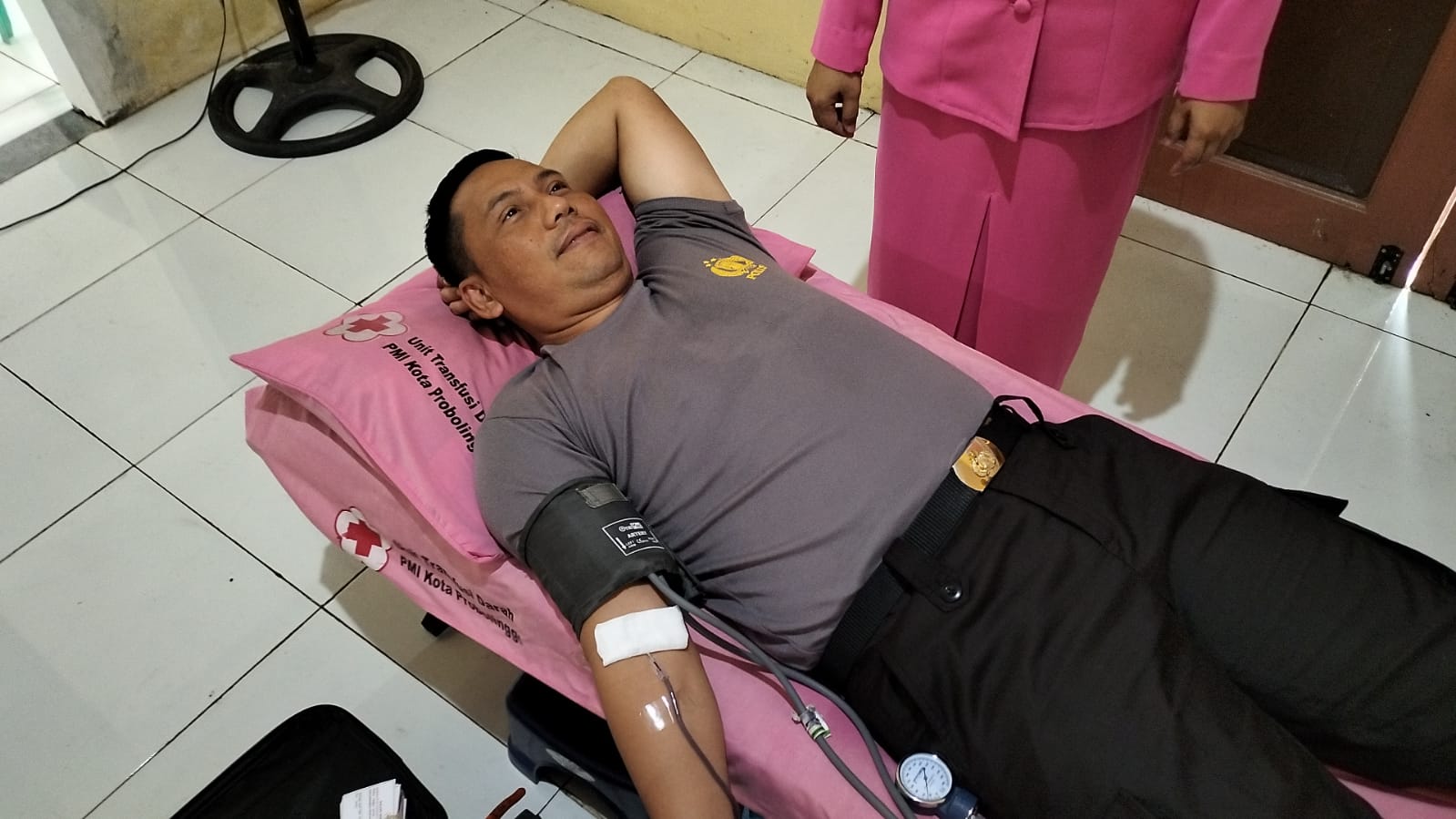 “Kapolres Probolinggo Kota AKBP Wadi Sa’bani, mengatakan kegiatan donor darah sebagi wujud kepedulian sosial yang bekerjasama dengan PMI Kota Probolinggo, Alhamdulilah pada pagi ini, insya allah target sekitar 200 pendonor darah.