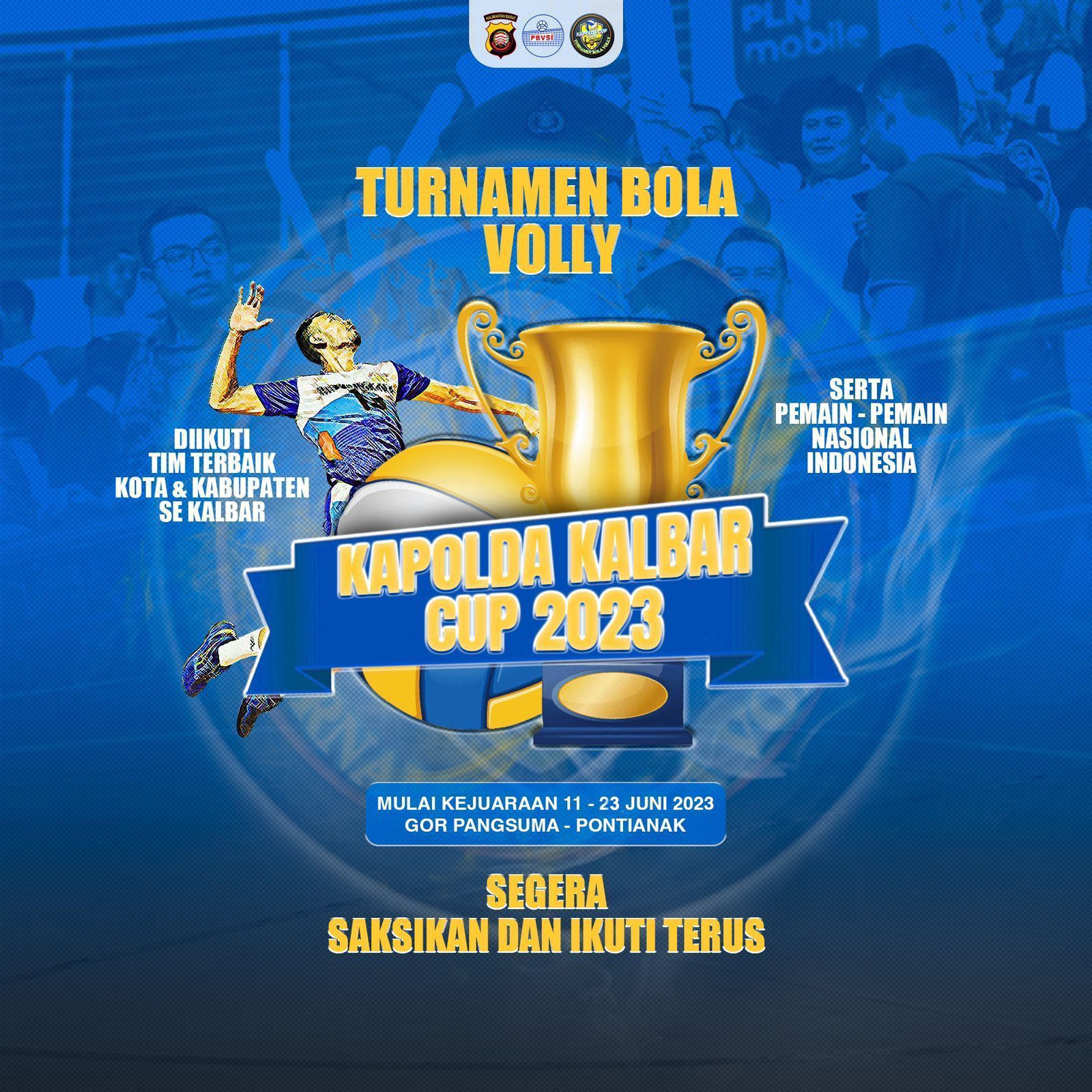 Kejuaraan Bola Volly Kapolda Kalbar Cup 2023 ini akan digelar mulai tanggal 11 sampai 23 Juni 2023 bertempat di Gor Pangsuma Pontianak.