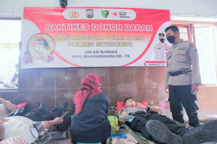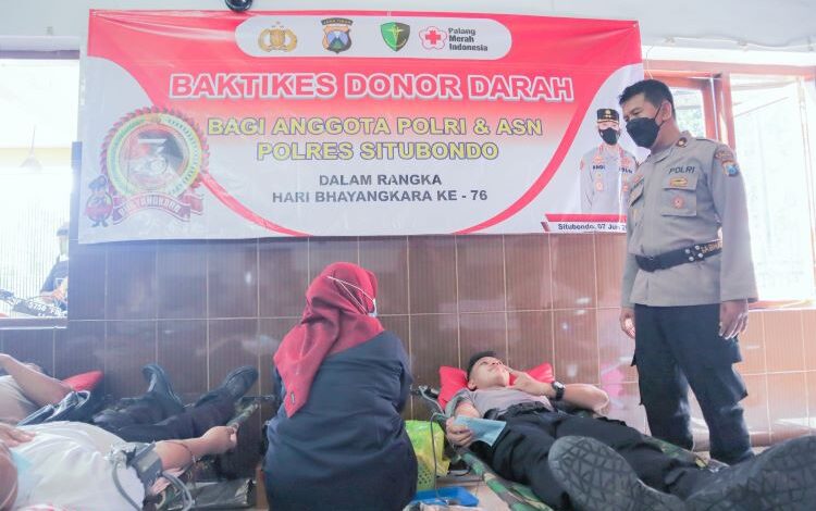 “Bakti kesehatan donor darah ini diselenggarakan kerja sama Polres Situbondo dengan PMI Kabupaten Situbondo. Adapun para peserta donor darah ini antara lain personel Polres Situbondo dan ASN Polres Situbondo,” jelas Wakapolres Situbondo Kompol Pujiarto SH, MH.