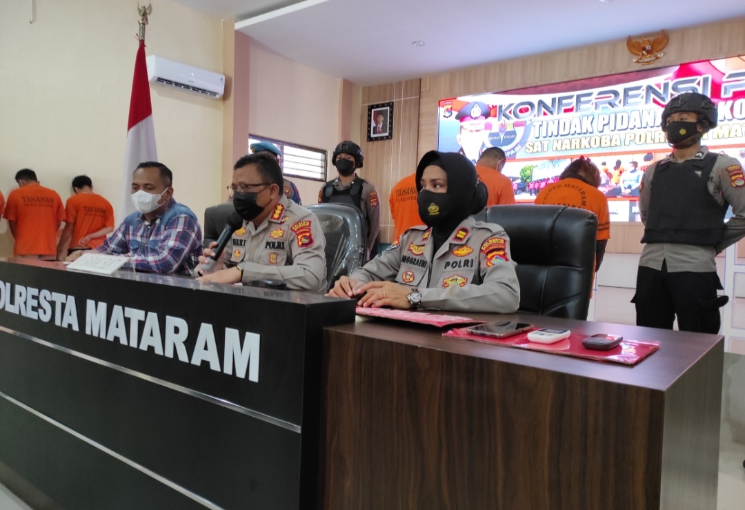 “Seperti disaksikan bahwa kedua tersangka dan satu saksi beserta barang bukti telah diamankan di Polresta Mataram. Sedangkan pasal yang akan disangkakan yaitu pasal 114, 112 dan 127 ayat (1) UU no 35 tahun 2009 dengan ancaman hukuman paling rendah 5 tahun penjara,” tutup Kapolresta Heri.