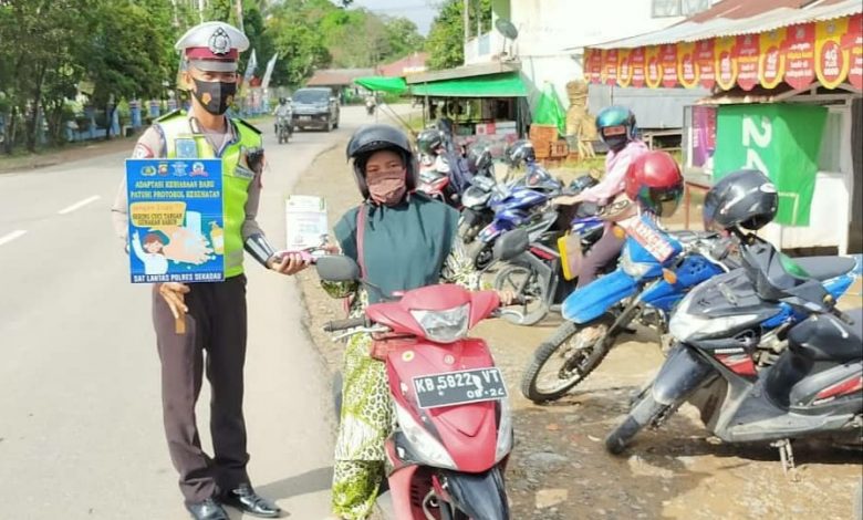 BeritaNasional.ID, Kalimantan – Satuan Lalulintas (Satlantas) Polres Sekadau di masa Adaptasi Kebiasaan Baru (AKB) melakukan kegiatan pendisiplinan protokol kesehatan pencegahan Covid-19.