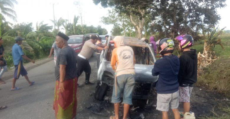 BeritaNasional.ID, Wajo – Sat Lantas Polres Wajo evakuasi mobil yang secara tiba-tiba tebakar ditengah jalan di Desa Inalipue Kecamatan Tanasitolo, Jum’at 10 Januari 2020 sekitar Pukul 15.30 Wita.