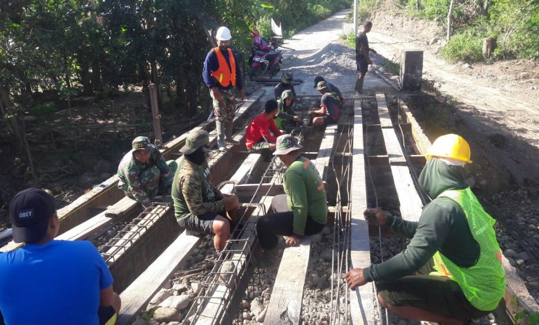 Satgas Kodim 1420 Sidrap Gotong Royong Bangun Jembatan II Tasseso
