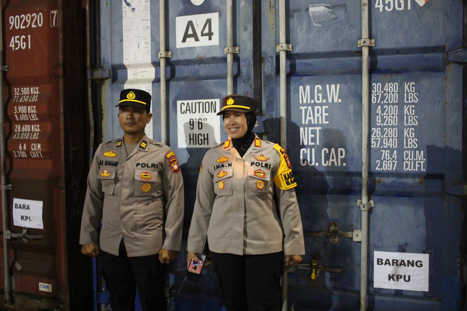 BeritaNasional.ID, KALBAR – Logistik Pemilu 2024 tiba di Pelabuhan Umum Swasta PT. Indo Container Line Jalan Kom Yos Sudarso, Kota Pontianak, Kalimantan Barat pada Kamis malam (26/10/2023). Aparat Kepolisian dari Polda Kalbar dan Polresta Pontianak yang tergabung dalam Operasi Mantap Brata Kapuas 2023-2024 melakukan pengamanan secara ketat proses pembongkaran dan pergeseran logistik pemilu tersebut.