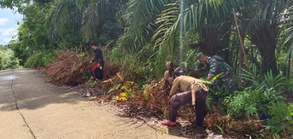 Warga desa bersama anggota Satgas TMMD ke-111 Kodim 1013/Muara Teweh membersihkan lingkungan di lokasi TMMD Desa Karamuan, Kecamatan Lahei Barat, Kabupaten Barito Utara. ada yang mencangkul, ada yang membersihkan dan membuang sampah, Rabu (30/06/21).