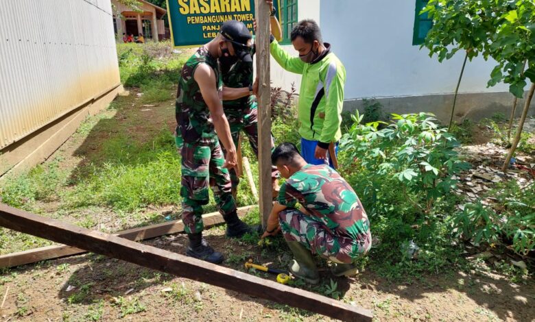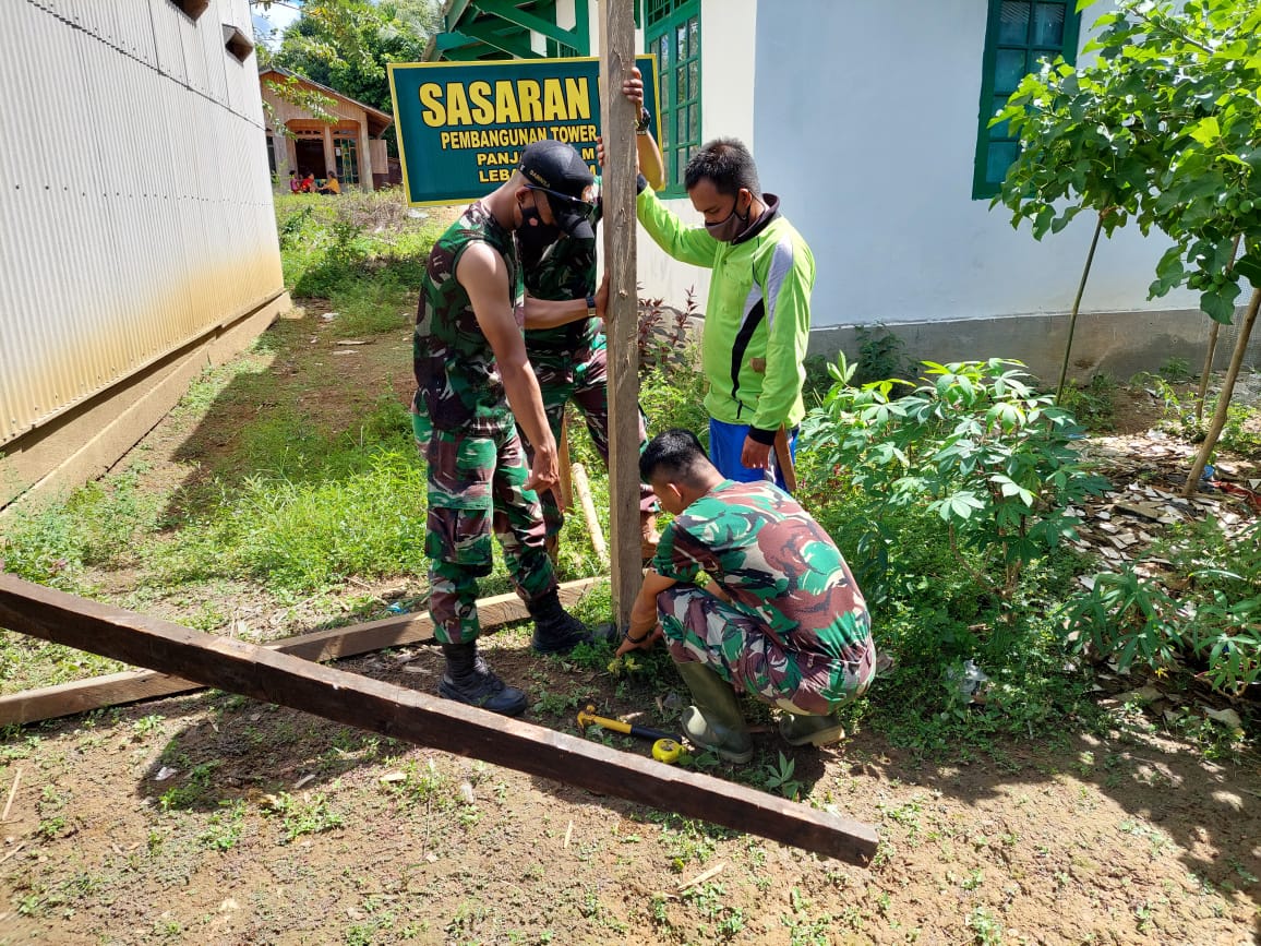Pasi Ter Kodim 1013/Mtw Kapten Czi Jony Forta menjelaskan kegiatan program pembangunan fisik TMMD Reguler Kodim 1013/Mtw khususnya Pembuatan Tower Air terus dilakukan oleh personel Satgas.