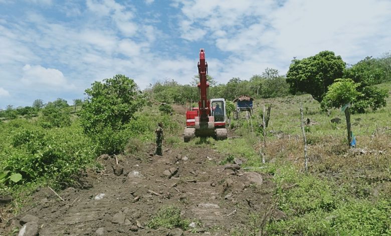 Dalam pembukaan jalur tersebut, Satgas TMMD Sidrap menurunkan alat berat jenis excavator.