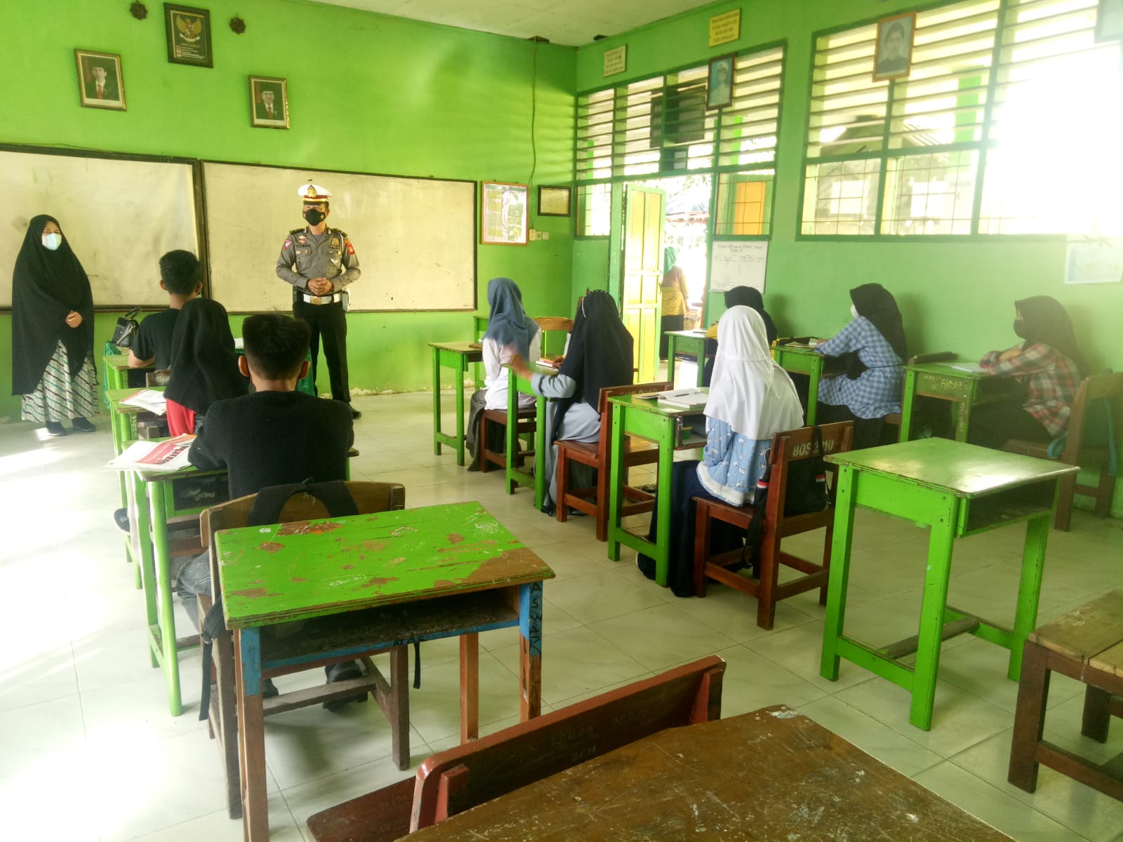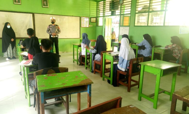 Satlantas Polres Sidrap Sosialisasi Tertib Berlalulintas dan Protokol Kesehatan di SMP Neg 6 Pangsid