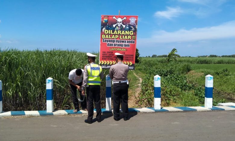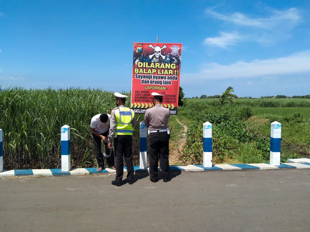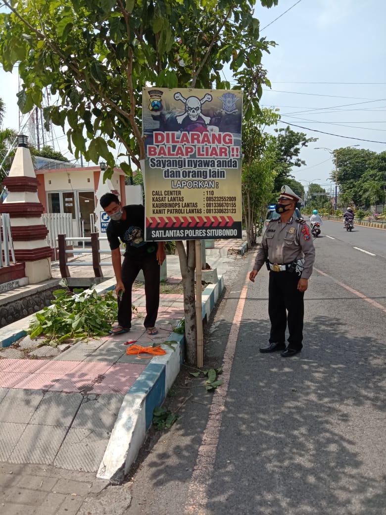 BeritaNasional.ID, SITUBONDO – Satlantas Polres Situbondo memasang baner imbauan untuk tidak melakukan balap liar di beberapa lokasi strategis dan lokasi yang rawan dijadikan tempat aksi balap liar, bertujuan untuk mencegah balap liar yang meresahkan masyarakat serta merugikan dirinya sendiri, Senin (18/1/2021).