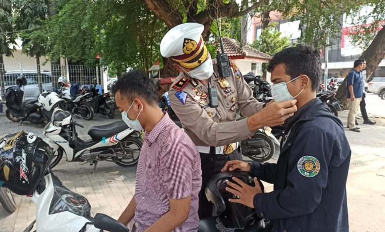 Satlantas Polrestabes Medan Bagikan Masker Kepada Pengguna Jalan