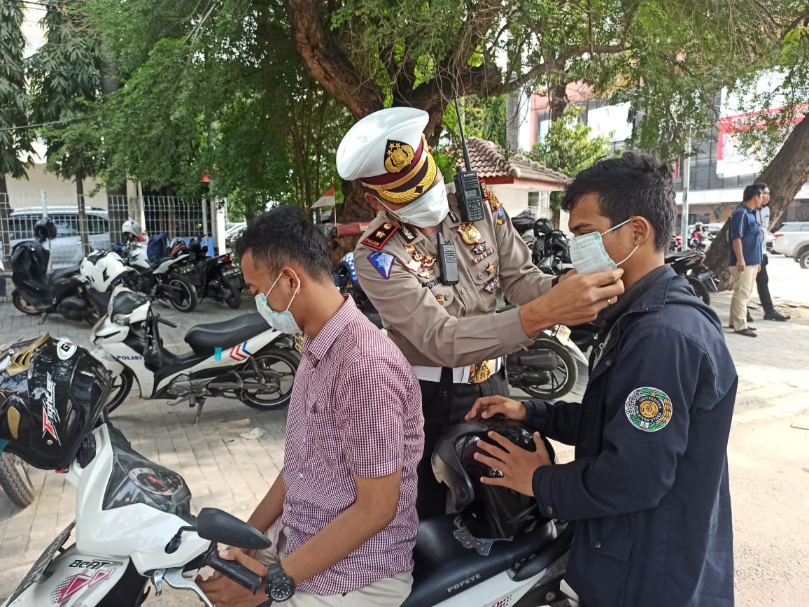Bahkan, para petugas juga terlihat tidak segan membantu pengendara untuk mengenakan masker tersebut.