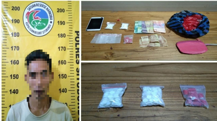 “Saat dilakukan penggeledahan, Tim Opsnal Satresnarkoba menemukan 250 butir Pil Trex terdiri dari 2 bungkus plastik klip berisi masing-masing 100 butir dan 10 gulung kertas warna merah berisi masing-masing 5 butir Pil Trex. Selain itu, ditemukan 5 plastik klip bekas bungkus Pil Trex, 1 kresek atau tas plastik berisi potongan kertas warna merah, uang tunai 65.000 dan 10.000 serta 1 buah dompet dan 1 buah HP, ” jelas Kapolres Situbondo AKBP Dwi Sumrahadi Rakhmanto.
