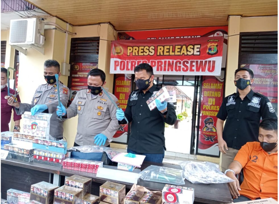 “Pelaku berhasil dibekuk saat sedang melakukan aksinya disalah satu swalayan yang berlokasi jalan KH Gholib Pringsewu pada Kamis (11/11/21) sekira jam 04.00 Wib” Terang Wakapolres Pringsewu Kompol leksan Ariyanto, Sik dengan didampingi Kasat Reskrim Iptu Feabo Adigo Mayora Pranata pada saat Konferensi pers di mapolres setempat. Kamis (11/11/21) siang