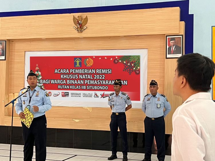 “Pemberian remisi yang berlangsung di aula Baharuddin Lopa Rutan Situbondo ini hanya diberikan kepada satu orang WBP yang beragama kristen dan kita juga memberikan kesempatan kepada WBP untuk merayakan Natal 2022 di Rutan Kelas IIB Situbondo melalui video call,” jelas Kepala Rutan Situbondo Rudi Kristiawan.