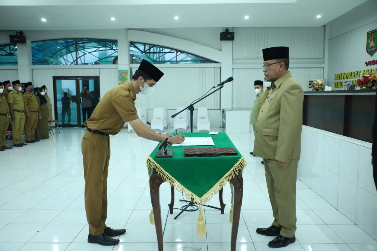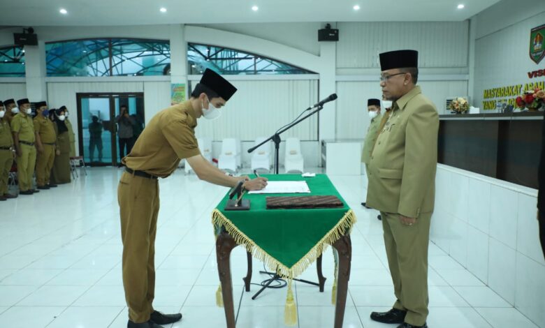 Kisaran, Sumatera Utara – Sekretaris Daerah Kabupaten Asahan Drs. H. John Hardi Nasution MSi melakukan pelantikan penyetaraan jabatan sebanyak 223 orang pejabat struktural menjadi pejabat fungsional bertempat di aula Melati kantor Bupati setempat, Jum’at (31/12/2021).
