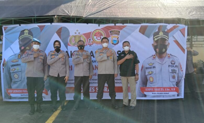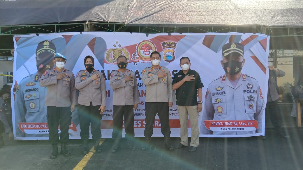 Kapolres Sidrap, AKBP Leonardo Panji Wahyudi mengatakan, vaksinasi massal tersebut adalah salah satu rangkaian menyambut hari Bhayangkara ke-75.