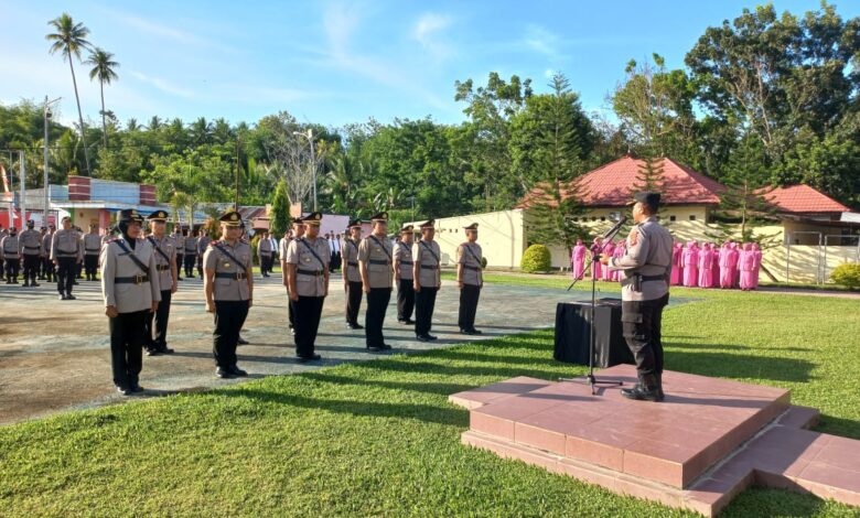 BeritaNasional.ID, Bone Bolango – Sejumlah pejabat Polres Bone Bolango mengikuti upacara serah terima jabatan dari pejabat lama kepada pejabat baru yang digelar di halaman Mapolres Bone Bolango, Sabtu (29/10/2022) sore.