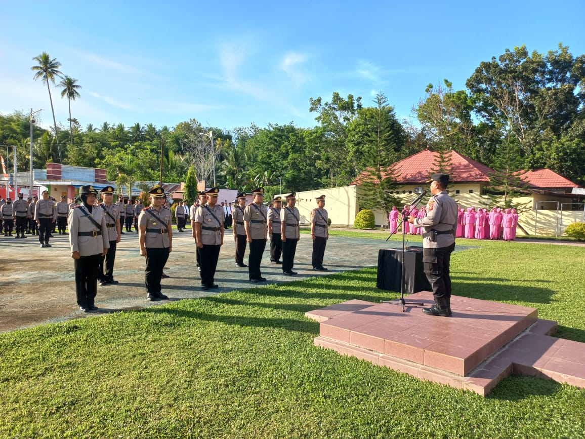 Upacara serah terima jabatan tersebut dipimpin oleh Kapolres Bone Bolango AKBP. Emile Reisitei Hartanto, SH.SIK selaku Inspektur Upacara.