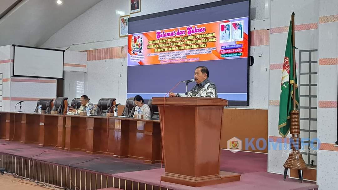 BeritaNasional.ID, KABANJAHE SUMUT – Sekretaris Daerah (Sekda), Drs. K. Terkelin Purba, M.Si Buka Rapat Koordinasi Jejaring Penanganan Korban Kekerasan Terhadap Perempuan dan Anak Kabupaten Karo Tahun Anggaran 2023 yang berlangsung di Aula Kantor Bupati Karo, Jumat (13/10/2023).