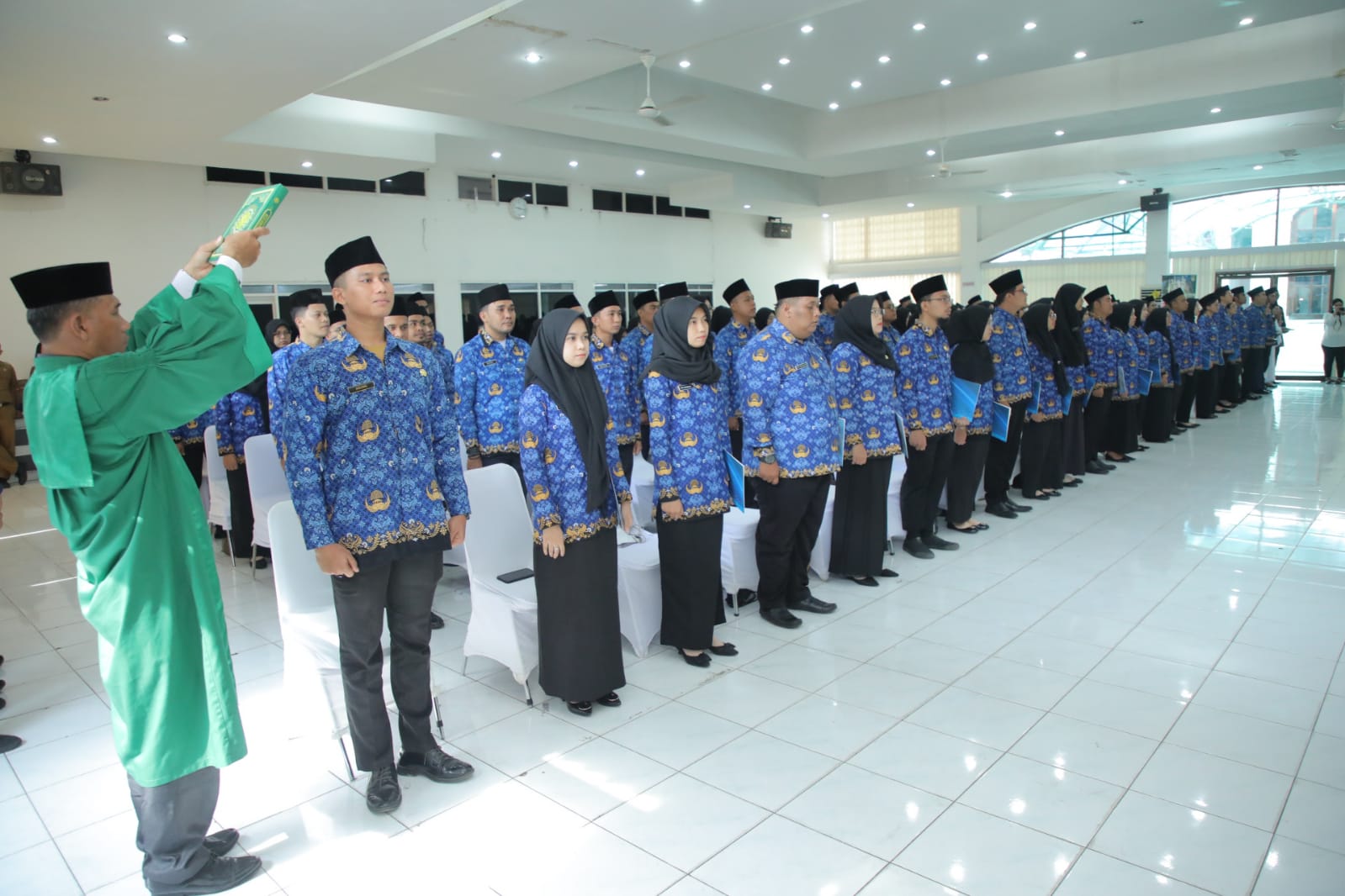 BeritaNasional.Id – Asahan, Sumatera Utara – Sekretariat Daerah Kabupaten Asahan Drs. John Hardi Nasution, M.Si mengambil sumpah / Janji sebanyak 123 orang Pegawai Negeri Sipil (PNS) Formasi Tahun 2019 dan 2021 di lingkungan Pemkab setempat, Senin (20/03/2023).