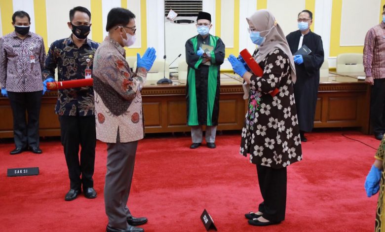Prosesi pelantikan yang dimulai pada pukul 08.00 WIB tersebut berlangsung khidmat dengan berpedoman pada protokol kesehatan Covid-19 secara ketat. Sebagai upaya menjaga jarak, tidak semua PNS yang dilantik hadir langsung di tempat prosesi, sebagian mengikuti pelantikan melalui video conference. Pelantikan disaksikan oleh Kepala Pusat Penerangan (Kapuspen) Kemendagri Benni Irwan dan Kepala Biro Kepegawaian Kemendagri Rahajeng Purwianti.